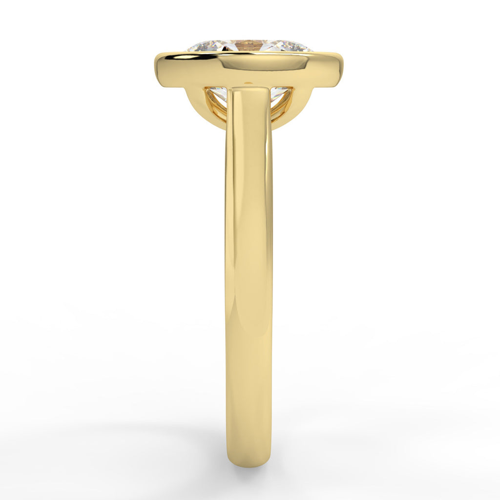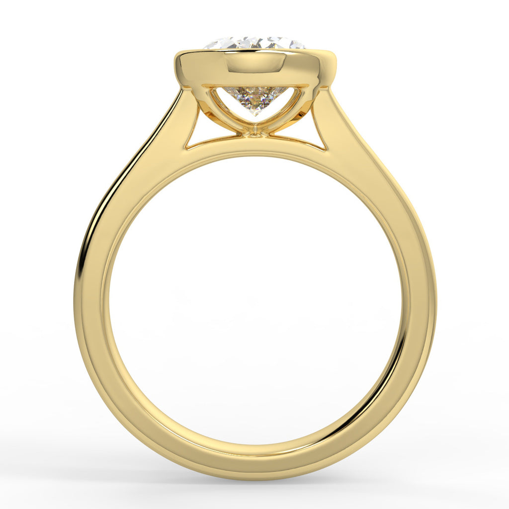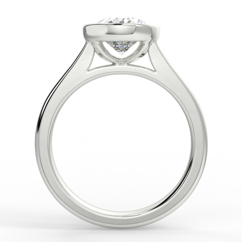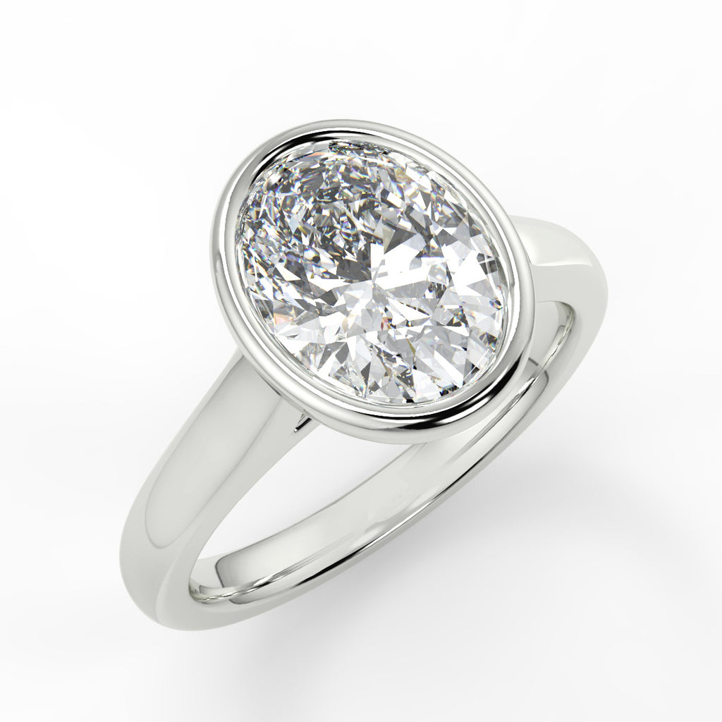 • Oval cut moissanite with bezel and non-cathedral setting