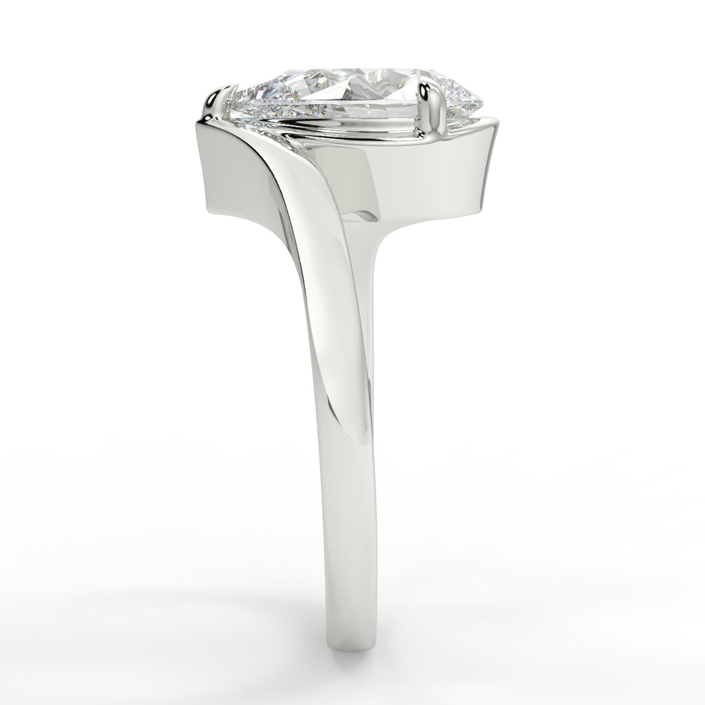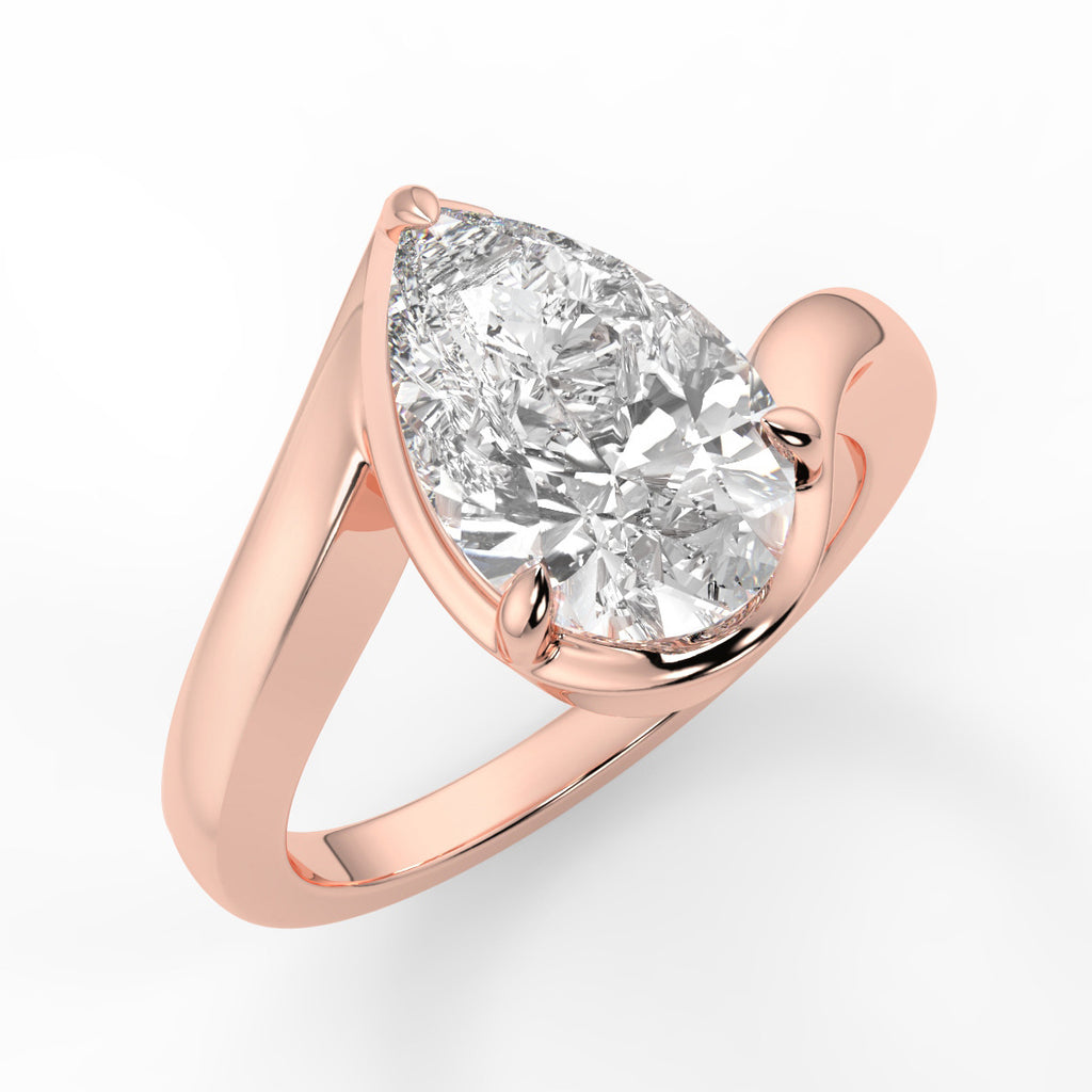 • Vertical pear-shaped lab-created diamond with a swivel band